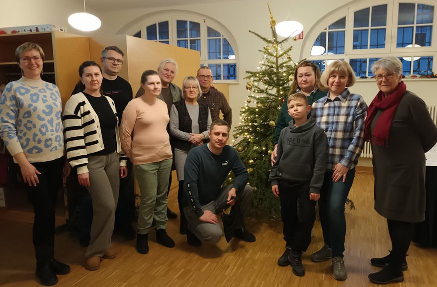 Einige Mitglieder der zwölf ukrainischen Familien aus dem Umfeld unseres Partnerkindergartens in Sumy, trafen sich zum gemeinsamen Basteln und Kaffeetrinken im Wichernsaal.