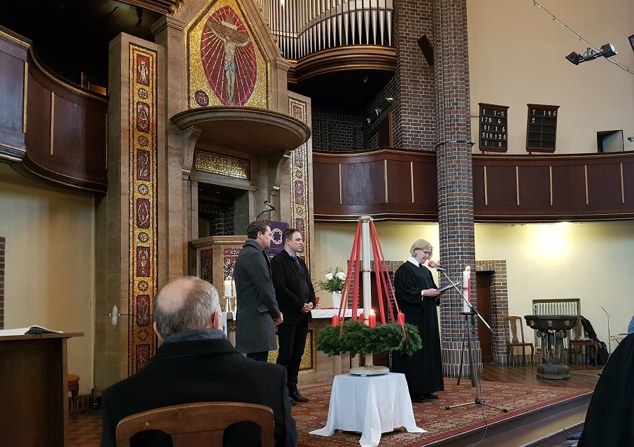 Am Sonntag um 10 Uhr fand der Gottesdienst zum ersten Advent in der evangelischen St. Georg Kirche in der Bergstraße statt. Nach dem Orgelspiel begrüßte Pfarrerin Gabriele Neumann die Gemeindemitglieder und zündete die erste Kerze am Adventskranz an. Gemeinsam mit dem Superintendenten, Frank Schürer Behrmann, gestaltete sie den Gottesdienst.