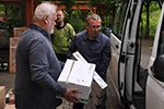 Eine Spende von 500 Euro haben heute die Frankfurter Freimaurer Uwe Liebing und Thomas Wahl an Schwester Sabine Kobert und Sozialarbeiterin Anne Oberländer vom Hospiz „Regine-Hildebrandt-Haus“ der Wichern Diakonie übergeben.