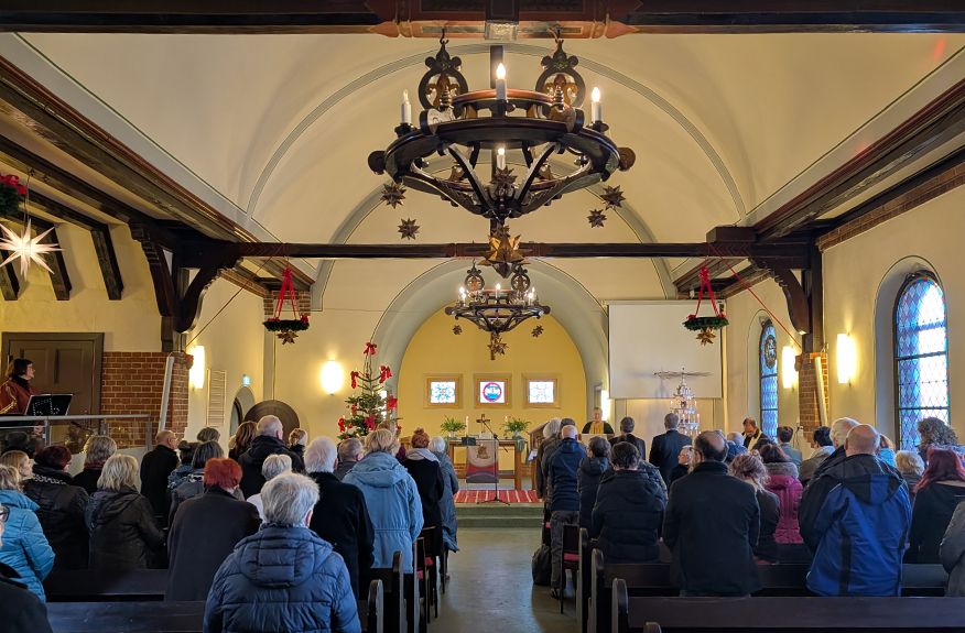 Am 16. Dezember war es wieder soweit: Einige Mitglieder der zwölf ukrainischen Familien aus dem Umfeld unseres Partnerkindergartens in Sumy, die mit Unterstützung der Wichern Diakonie und der Samariteranstalten in Frankfurt (Oder) und Berkenbrück leben, trafen sich zum gemeinsamen Kaffeetrinken im Wichernsaal. Bei Stollen, Plätzchen und Kakao wurde sich ausgetauscht und gemeinsam ukrainische und deutsche Weihnachtslieder gesungen.