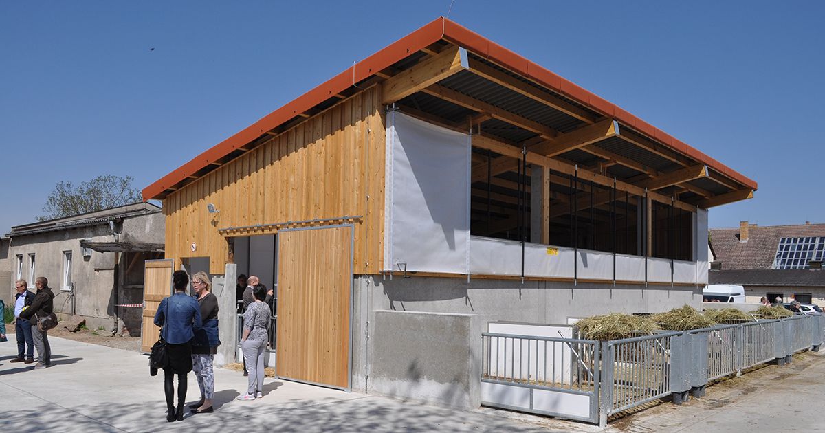 Der neue Stall ist viel heller und freundlicher und mit moderner Technik ausgestattet. Die Grundideen für den neuen Bau hatten die Kolleginnen und Kollegen der Landwirtschaft selbst eingebracht. Fachmännisch entwickelt und verwirklicht wurde das Gebäude von den Firmen Norddeutsche Bauernsiedlung, Agrar Technik Barnim und dem Frankfurter Bauunternehmen Schönherr und Fritsch. Jochen Hanschel dankte den Firmen für die gute Zusammenarbeit und das reibungslose Umsetzen des Vorhabens.