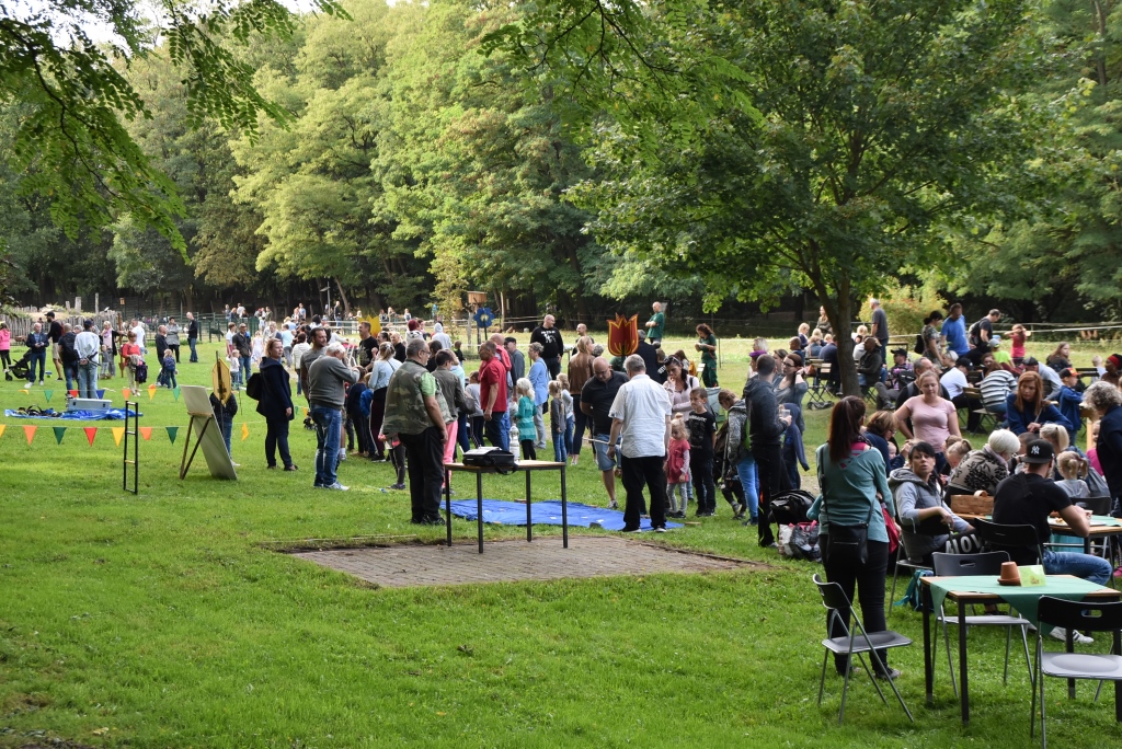 Großer Andrang herrschte am Sonntag im Wildpark. Fast 1.000 Besucher waren gekommen, um bei spätsommerlichen Wetter zu schlendern, zu spielen und zu schlemmen. Die Wildparkschule hatte geöffnet, auf der Festwiese wurde gezaubert, gebastelt und gespielt und es gab Zwiebelkuchen, Eis und Rote Brause. Die Gronenfelder Werkstätten bedanken sich bei allen Besuchern und den Mitgliedern des Förderverein Wildpark e.V. für einen bunten und fröhlichen Nachmittag im Wildpark.