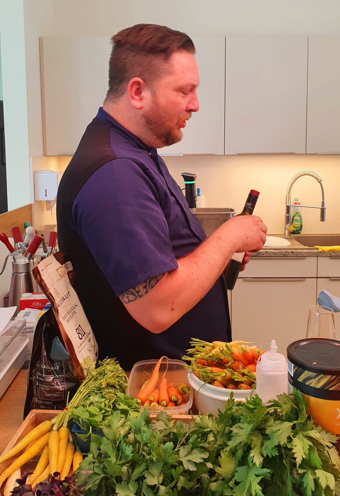 Im Juni allerdings konnten die Mitarbeiterinnen und Mitarbeiter unserer Pflegedienste gGmbH mit ihm einen besonderen Fortbildungstag erleben. In der Küche unseres Hospizes wurde gemeinsam über Rezepte gesprochen, geschnippelt, gedünstet und gebraten. Das Ergebnis war ein schmackhaftes Menü, das an einem perfekt gedeckten Tisch kredenzt wurde. Die Gäste des Hospizes, die Mitarbeiter und Mitarbeiterinnen, die Teilnehmer und Teilnehmerinnen waren gleichermaßen begeistert.
