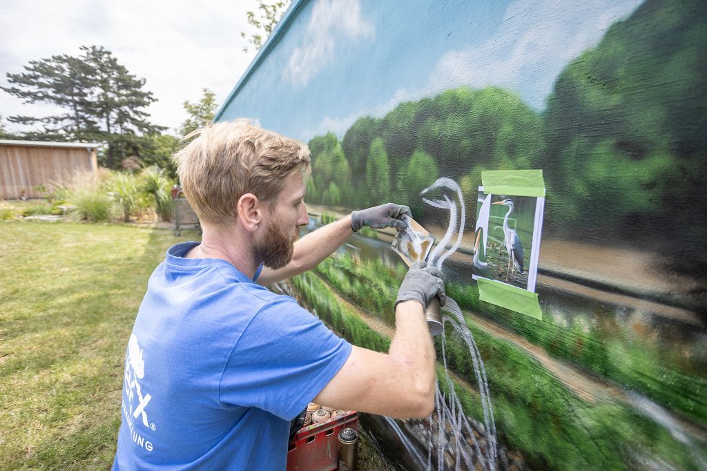 Umgesetzt wurde das tolle künstlerische Graffiti-Projekt von Daniel Siering von der Firma art-afx aus Potsdam, die in Frankfurt keine Unbekannten sind und unter anderem viele Trafohäuschen gestaltet haben. Die Spender, die nicht genannt werden wollten, wie auch die Gäste und Mitarbeiter des Hospizes, die sich das Wandbild auf einer vormals grauen unansehnlichen Mauer angeschaut haben, waren begeistert und lobten vor allem den Detailreichtum und die Tiefe des Wandbildes.