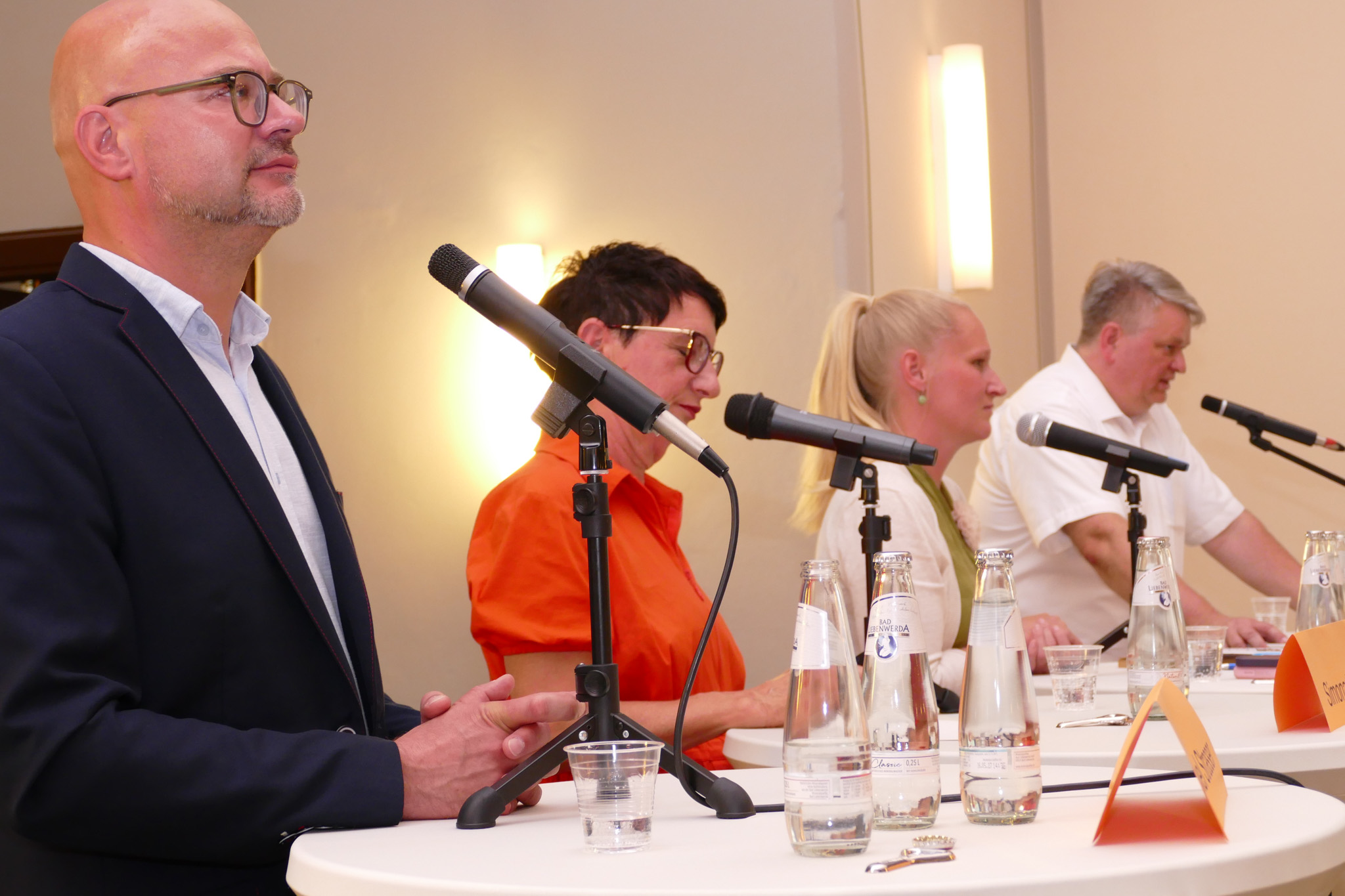 Ein weiteres Anliegen war die Zukunft des Helene-Sees. Hier waren sich alle Kandidierenden einig, dass der Prozess bis zur Wiedereröffnung noch lange dauern wird. Gleichzeitig betonten sie, wie wichtig es sei, immer wieder auf das Thema aufmerksam zu machen, um Fortschritte zu beschleunigen. Auch die Sicherheitslage in der Innenstadt, insbesondere im Lenné-Park, kam zur Sprache. Diskutiert wurde ein Fünf-Punkte-Plan, der eine insektenfreundliche Beleuchtung vorsieht, ausgestattet mit Bewegungsmeldern. Ergänzt werden könne dieser Plan durch den Einsatz von Streetworkern, Sozialarbeitern sowie geschultem Personal, das vor Ort Streife läuft, so die Vorschläge.