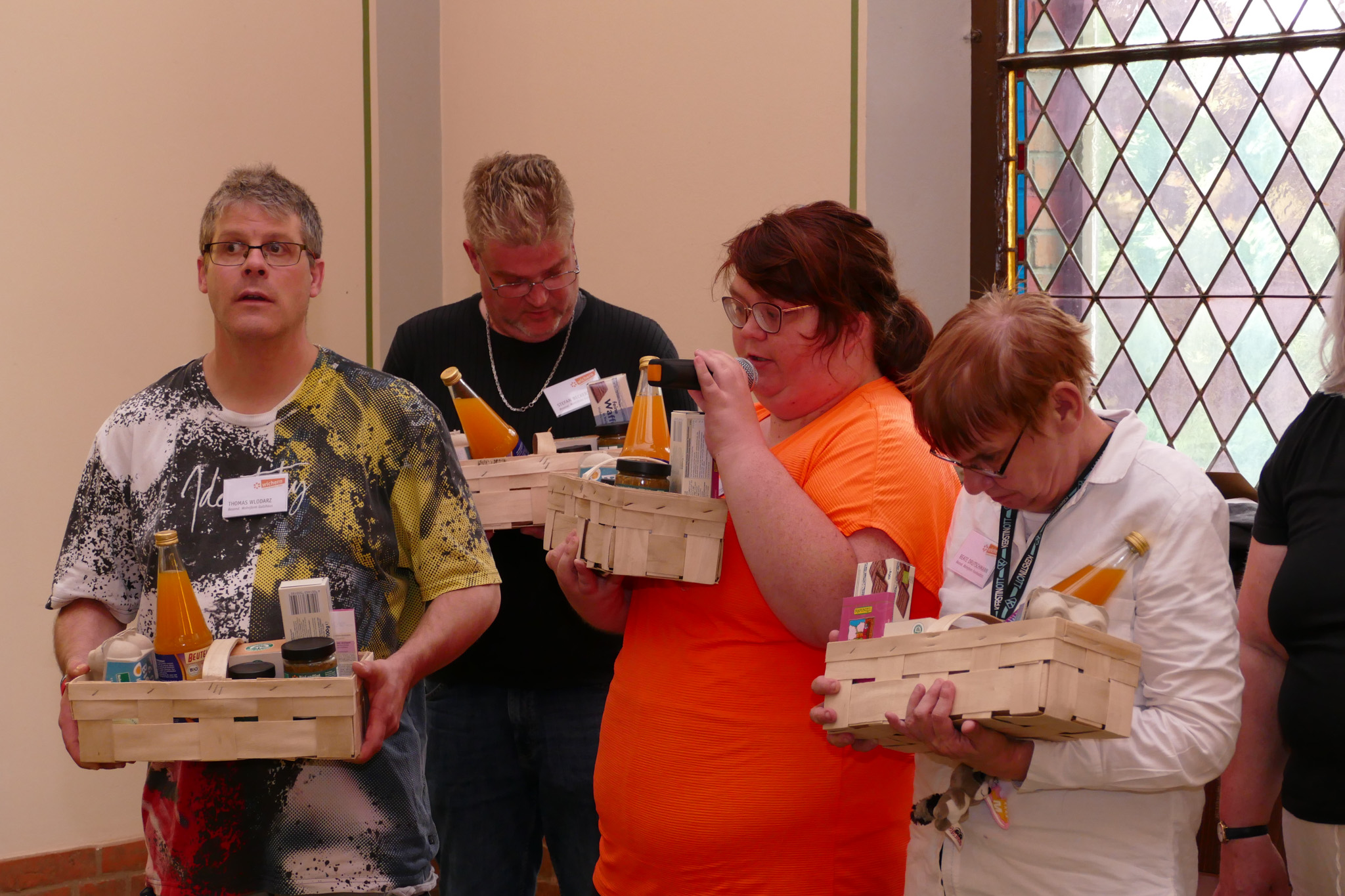 Die Veranstaltung war insgesamt geprägt von einem offenen, respektvollen Austausch. Viele Gäste nutzten die Gelegenheit, persönliche Fragen zu stellen. Zum Abschluss gab es die Möglichkeit, Erinnerungsfotos mit den Kandidierenden zu machen oder Informationsmaterialien mit nach Hause zu nehmen. Als Dankeschön überreichten einige Klienten Präsentkörbe aus dem Bioladen der Gronenfelder Werkstätten.