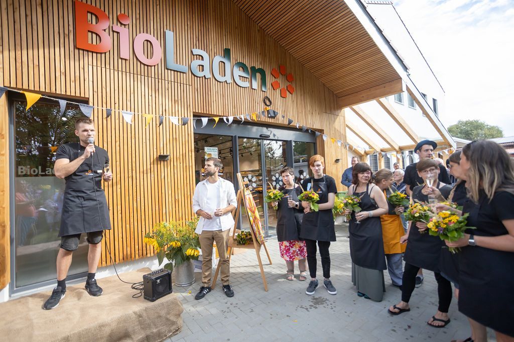 Es ist geschafft. Der Bioladen in der neu gebauten Scheune auf dem Gelände der Gronenfelder Werkstätten ist eröffnet. Sehr viele Frankfurter schauten vorbei, als sich zum ersten Mal die automatischen Türen zur Seite schoben. „Es hätte aber wirklich keine Stunde eher sein dürfen“, sagt Teamleiter Paul Zepke in einer kleinen Eröffnungsansprache. Bis zuletzt wurde an der perfekten Warenpräsentation gearbeitet. Als Dank für den Einsatz der letzten Wochen verteilten die Geschäftsführer der Gronenfelder Werkstätten Frank Hoffmann und Jens Walsdorf Blumen an die Mitarbeiterinnen und Mitarbeiter und die Beschäftigten des Bioladens. Auch unsere Vorstandsvorsitzende Gabriele Floßmann wollte den spannenden Moment der Eröffnung nicht verpassen und gratulierte ebenfalls zum gelungenen ersten Verkaufstag. Neu in der 33-jährigen Geschichte des ersten Bioladens in Frankfurt sind nun sieben Arbeitsplätze für Menschen mit Beeinträchtigungen entstanden. Von den ersten Kunden wurde der neue Bioladen vielfach ausdrücklich gelobt. So hat man jetzt vom Backstand einen direkten Blick in die Bäckerei. Außerdem gibt es Bio-Tiefkühlkost, die vorher nicht im Angebot war. Zudem ist mehr Platz um das umfangreiche Warenangebot bereitzustellen und dem Kunden so zu zeigen, dass man sich vollumfänglich mit Bioprodukten ernähren kann. Besonderes Augenmerk liegt im Bioladen in Gronenfelde auf den besonders kurzen Transportwegen. So müssen etwa Tomaten oder Gurken, sowie auch Eier und vieles andere, keine einzige Straße überqueren. Der Weg von der Produktion bis in den Laden ist bei vielen Waren, die in der Landwirtschaftsabteilung der Gronenfelder Werkstätten hergestellt werden, oftmals nicht einmal hundert Meter lang. Vom Feld direkt in den Laden und das ohne Umwege, besser geht es nicht. Das gilt im übrigen auch für das Brot, denn das wird aus eigenem Korn gebacken. Der Bioladen im Gronenfelder Weg 22 hat zukünftig von Montag bis Freitag von 10 bis 18 Uhr und am Sonnabend von 10 bis 13 Uhr geöffnet.