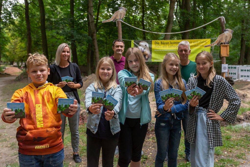 „Noch in diesem Jahr sollen die Tiere mit der rüsselartigen Nase in Rosengarten ankommen und heimisch werden“, freuen sich Wildparkchef Jochen Hanschel sowie Pia, Samia, Helene, Ruby und Carl. Gemeint sind damit natürlich die echten Nasenbären, denn auch das neue Gehege im Wildpark ist schon fast fertig. Die Schüler der Grundschule Mitte werden eine ganz besondere Beziehung zu den Tieren aufbauen, soviel ist sicher. Denn schon jetzt haben sie den Weg eines Nasenbären nach Frankfurt aufgeschrieben.