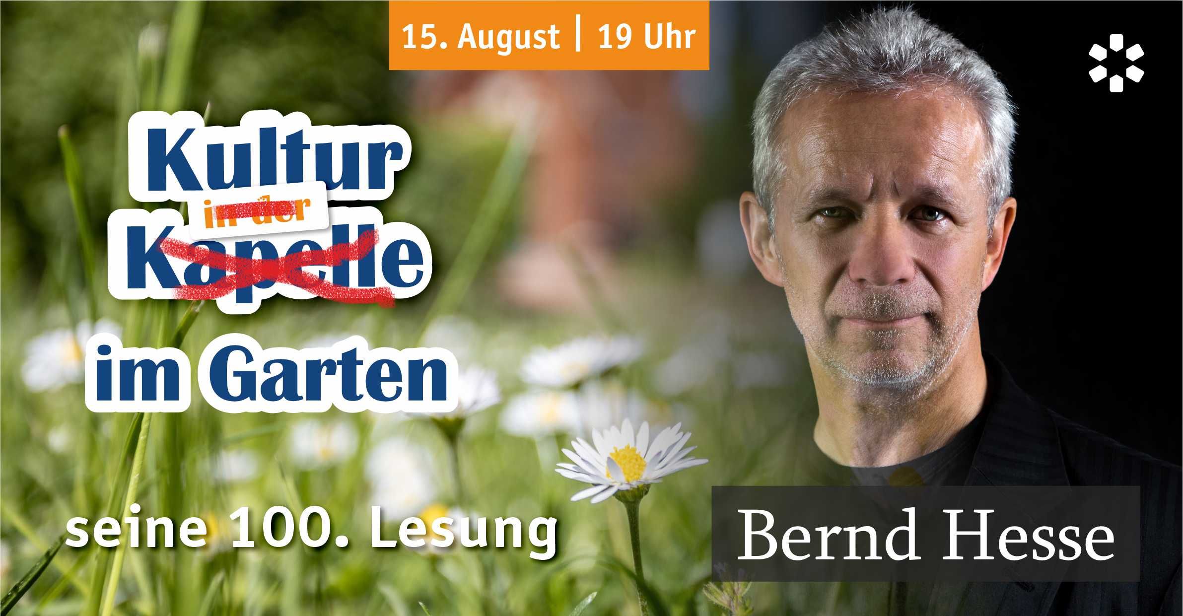 Wir freuen uns sehr, dass Bernd Hesse am 15. August für seine 100. Lesung unseren Garten auserkoren hat. Richtig gelesen. Kultur in der Kapelle zieht für diesen lauen Sommerabend ins Grüne. Sie können es sich auf Picknickdecken, aber natürlich auch auf unseren Stühlen gemütlich machen und den Worten des Autors lauschen. Unter anderem lässt uns Bernd Hesse an den historischen Kriminalfällen von E.T.A. Hoffmann Teil haben. Wir freuen uns schon jetzt sehr. In der Pause gibt es wie immer ein Glas Wein und ein Schnittchen. Als Austritt sammeln wir Spenden für unser Jahresspendenprojekt.